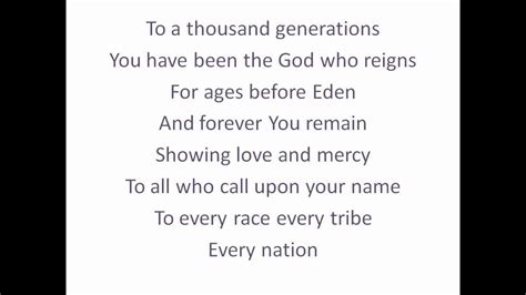 A Thousand Generations Lyrics. You have been faithful to a thousand generations. To sing the song of ages to the.