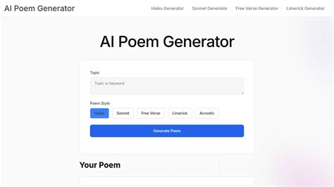 Web the ai poem generator is an automated tool that uses advanced language technology to create unique and creative poems based.