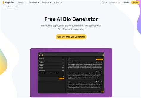 Biography Generator Free. Free online short personal bio generator. What can i use this ai social media bio generator for?