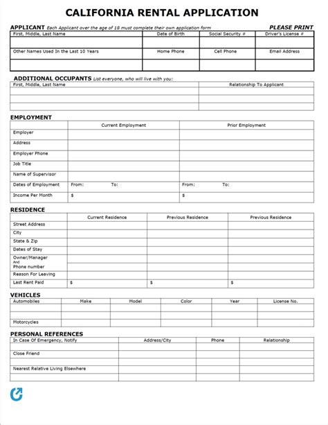 Web the california rental application is a form used in residential property management for screening through applicants until an ideal tenant is found. The form requests personal and employment information plus consent for. Web updated january 08, 2024. Web a california rental application form helps a landlord choose a prospective tenant who is well suited to rent a particular property. A california rental application is often used by a landlord or property management company when seeking a viable candidate for a rental property. This application will help the. Prepare a printable rental application form to help you vet prospective tenants for your property. Web free california rental application form. Create and customize your screening document with. Requiring an application be completed (along with an application fee).