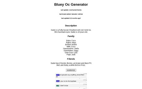 Bluey Oc Generator. Make your oc from the cute dog cartoon for kids 。:゚૮ ˶ˆ ﻌ ˆ˶ ა ゚:。. Discussion is there a website where you can create your own bluey character?