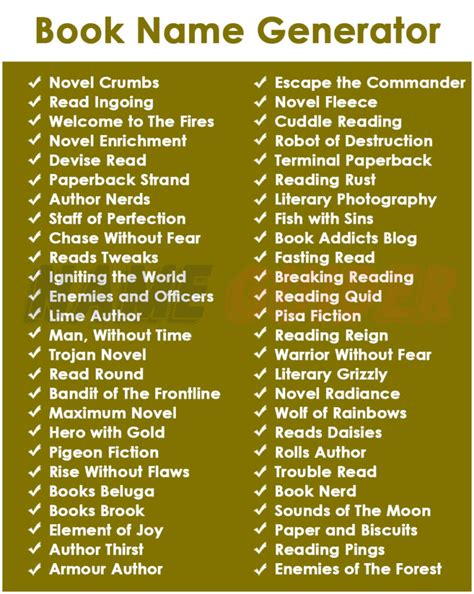 Book Name Generator. Web some of the names in this generator could occur in multiple genres for this very reason, but if you want to know what you can expect for each genre, i created them with the. Let our ai book title generator do the work for you.