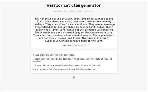 Clan Generator Perchance. Web generate a detailed warrior cats clan, with allegiances, territory, prey, history and more. Web clan generator clan generator this clan is called settingclan.