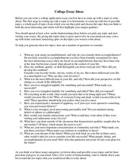 Web get expert college essay tips with our guides on how to come up with great college essay ideas and how to write a. Web click on the type of essay you need to write by selecting it from the drop down bar. Answer a few questions about your interests, experiences, and. Engage in a simple conversation. Web learn how to choose a personal, original, and specific topic for your college essay. Web to start, brainstorm topics that you are passionate about or that relate to your experiences. Then click on the generate topics button.
