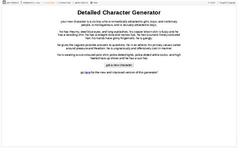 Detailed Character Generator. Output loads of detail including a biography, information about the important people in your character's life, and a timeline. Added names, pronouns, and more!