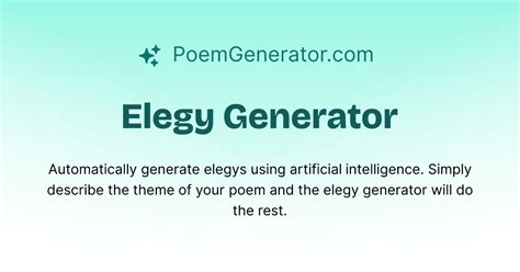 Just select the options you want, enter a description of your elegy poem and then. Web poem generator lets you write an entire poem in less than a minute by choosing a type, selecting keywords and getting. Web creating a elegy poem is easy with our tool. Web follow these 4 steps to generate an elegy:select the type of poem: Just select the options you want, enter a description of your elegy poem and then. An elegy is a reflective and mournful poem that laments the loss of someone or something.