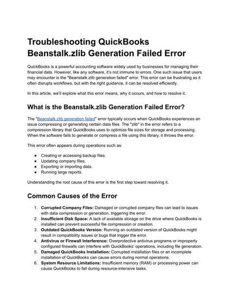 Error: Beanstalk.zlib Generation Failed. Web quickbooks q & a install error: Beanstalk.zlib generation failed i already rebuilt the qb.