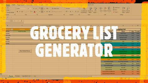 Simple Grocery List Generator Spreadsheet for Excel Shopping Etsy