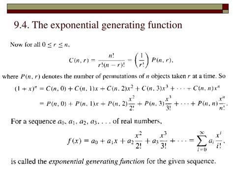 Exponential Generating Function. Web example 3.2.1 find an exponential generating function for the number of permutations with repetition of length n of the set {a, b, c}, in.