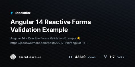 Angular Form Validation Example - Stackblitz. The app component contains our example sign. Run the live example / download example.