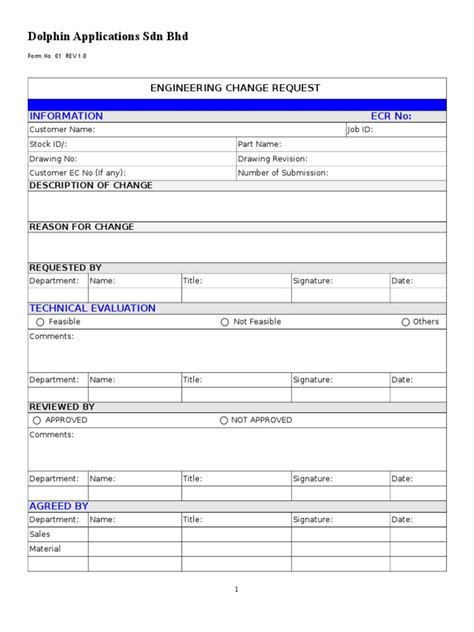Engineering Change Request Form. What is an engineering change request? Once you realize a change is needed in your product or product design, the first step is the.