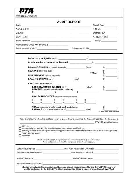 Pta Audit Form. Web (a sample of an audit report form is located in the leadership resources under audit and budget.) the audit report should: Verify that the amount listed on the audit report is the.