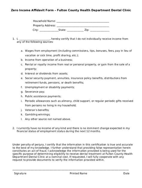 Zero Income Affidavit Form. I, _____ hereby certify that i do not individually receive income from any of the following sources: This form can be used as.