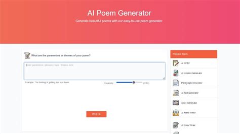 Enter title enter the title of the poem in the ai poem generator for which you want to generate the poem. Web the ai poem generator is an automated tool that uses advanced language technology to create unique and creative poems based. Enter title enter the title of the poem in the ai poem generator for which you want to generate the poem.