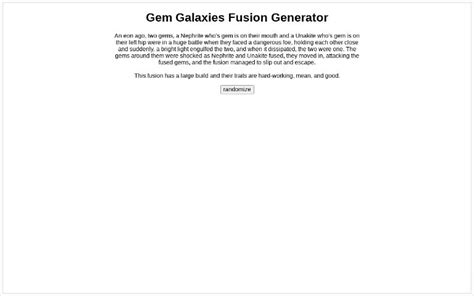 Gem Fusion Generator. Web create a fusion between an olivine and a ruby. Web fusions retain all standard gem abilities, such as fusing, shapeshifting, bubbling, and even more.