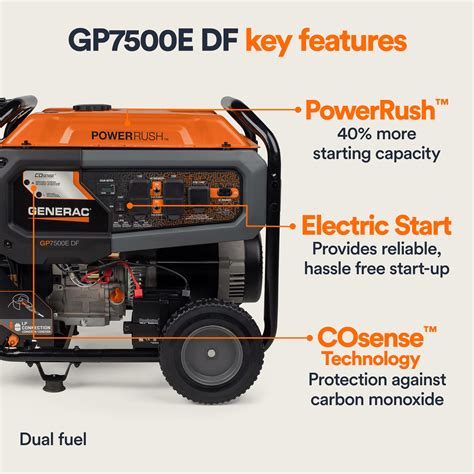 Web this generac gp7500e portable generator is easy to use in a variety of applications and offers affordable reliability. Web ac rated output running watts: 7500 ac maximum output motor starting watts: 9375 ac voltage 120/240 vac ac frequency 60.