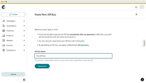How to generate an API key from mailchimp account?
