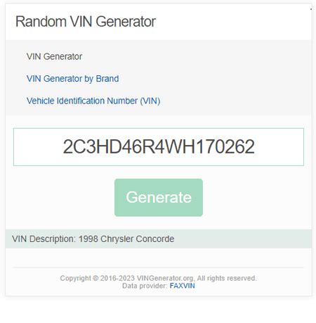 You can select a car maker from a. Vin generator vin generator by brand vehicle identification number (vin) vin description: Web randommer is a free online tool that lets you generate random vin numbers for any car model. Development tool maintained by vinaudit.com (a vehicle data provider) vinaudit.com (a vehicle data.