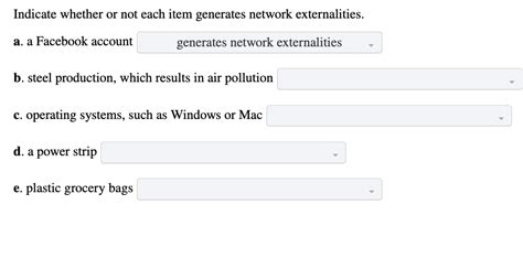 Indicate Whether Or Not Each Item Generates Network Externalities.. Web indicate whether or not each item generates network externalities. Steel production, which results in air.