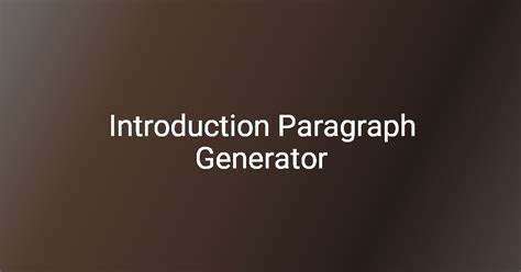 Web in addition to using our introduction generator tool, here are some valuable tips to keep in mind when crafting introductions. Web you can paraphrase sentences, create an introduction paragraph or an entire paragraph, or even generate a random paragraph. Web in addition to using our introduction generator tool, here are some valuable tips to keep in mind when crafting introductions. Web ahrefs’ paragraph generator uses a language model that learns patterns, grammar, and vocabulary from large amounts of text.
