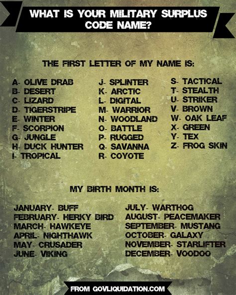 Military Code Name Generator. Web code names of historic events, projects and military operations. Code names have long been used to hide the true nature or.