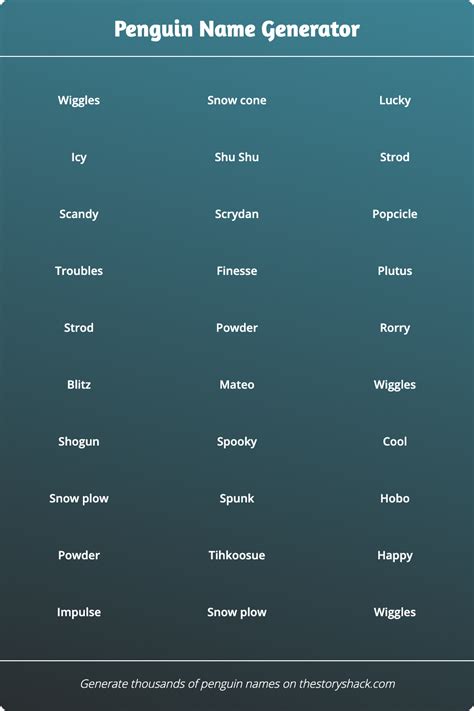 Penguin Name Generator. With a few clicks, you’ll.