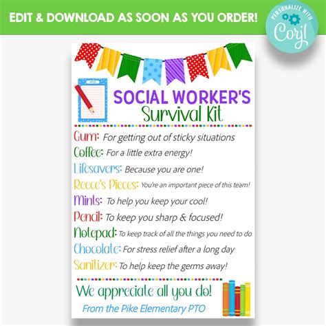 Social Worker Survival Kit Printable. You can customize the text,. Web a digital product that allows you to edit and print your own social worker's survival kit gift tags.