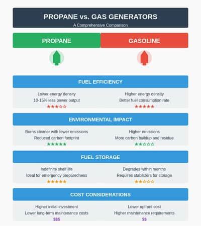 However, your generator run time depends on the. Web table of contents. Web gasoline produces more energy by volume than propane. Web propane generators emit less co2 and co than gasoline generators, making them more environmentally friendly.