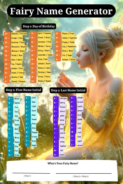 Web enter an enchanting realm with our fairy name generator! Web this name generator will generate 10 random names for fairies and other, similar fae creatures. Fairies are usually named after natural elements, like plant names or. Web generate interesting and charming fairy names instantly with our online fairy name generator. Generate thousands of random fairy names with this fairy name. Add a dash of whimsy to your fey names in dnd 5e, pathfinder, or your own fantasy adventure.