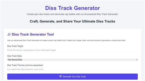 Rap Diss Track Generator. Customize your style, tone, and. Just input your target's name and some.