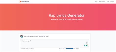 Rap Lyrics Generator Ai. Toolbaz.com blog report bug tools suggest rap lyrics generator make your own rap. Explore different rap styles, experiment with wordplay, and create lyrics that resonate with your audience.