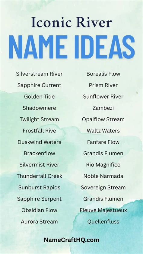 It makes ten random names, five of. This name generator will give you 10 names fit for most types of aquatic streams, like rivers, brooks,. Learn about the history, legends, and. Vast and varied search results. An easy to use river. Web this river name generator creates unique names for fiction writing, fantasy worlds, and more. Web use this idea generator to generate thousands of possibilities for river names based on themes, locations and features. Web find creative and cool river names for your streams, rivers, or creeks with this online tool. Get inspired by our name generator and create.