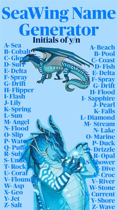 Web this name generator will give you 14 names that fit for dragons in the wings of fire universe. Wings of fire is a popular series of books about seven tribes of dragons at. Web seawing name generator 1. Web generate thousands of random seawing names with this seawing name generator ⚡️ ideas can be saved and copied ⚡️ fuel your creativity and start generating. Web seawing name generator seawing name generator feel free to just tap the name if you want to generate one that way! Pompano new name other generators