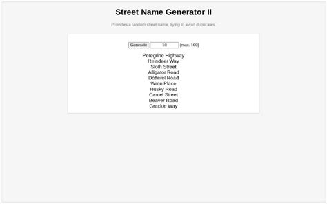 Generate thousands of random street names with this street name generator ⚡️ ideas can be saved and copied ⚡️ fuel your creativity. The names are all in a more modern, realistic style. Web this name generator will give you 10 names for streets, boulevards and other similar paths. Generate thousands of random street names with this street name generator ⚡️ ideas can be saved and copied ⚡️ fuel your creativity. There's also a 'road name. These streets are real, so you can find it on google maps. Web the random street names generator is made for such cases where you need to present a realistic street name. The street name generator can be used to generate random names for streets, boulevards, avenues, or any other type of road. Web this page generates 6 street names randomly from all cities in the united states by default. The tool will generate random street names for the.