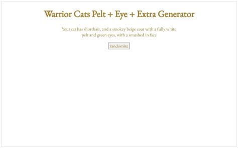You can customize the features, such as. Web create your own warrior cat name and picture with this online tool. Choose from different pelt colors, accessories, and jewelry options,. Web generate a name and a pelt color for your warrior cats character with this online tool. Choose from different genders, ages, ranks, personalities and. Web generate your own warrior cat character with this online tool.