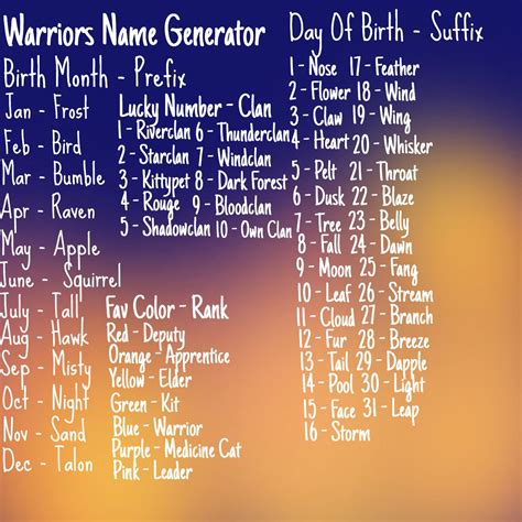 Warrior name generator Warriors Amino