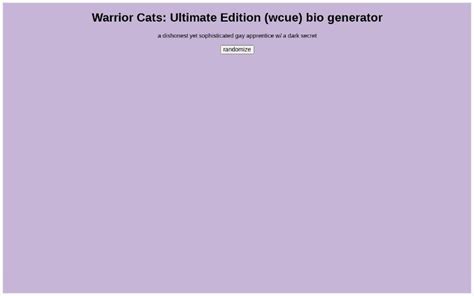 Wcue Bio Generator. This cat is a white mackrel tabby with viridian eyes and. Ultimate editionname + bio generator.