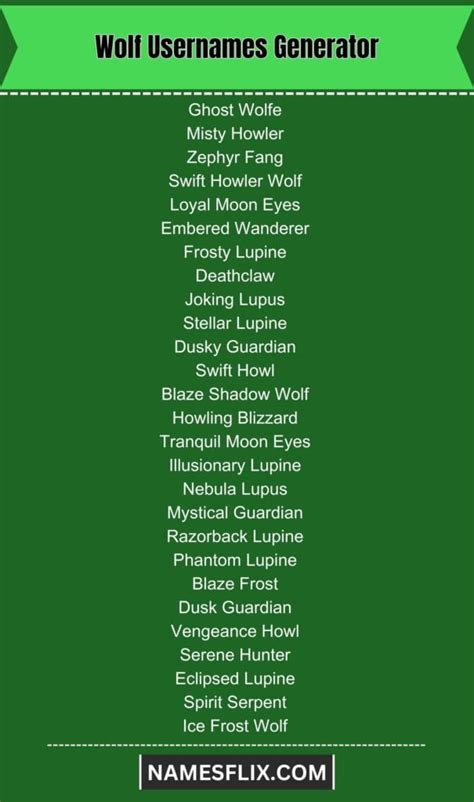 Wolf Username Generator. Thinking of the best wolf names? Web the wolf name generator is a fascinating tool designed to spark your creativity and awaken your inner spirit animal.