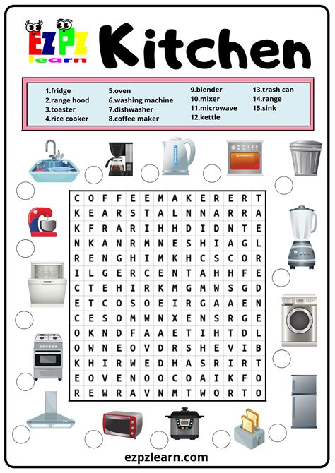 Kitchen Word Search. Word search contains 31 words. Click the download link to.