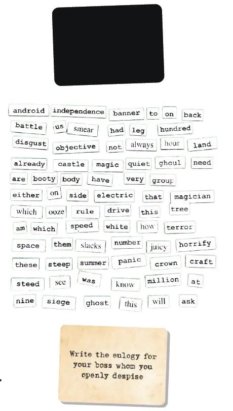 Word Magnet Game. Plus, it's really fun and relaxing! Each round, the player judge picks a situation and players try to come up with the best.